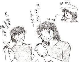 | 中学生編に入って彼の印象が変わった最大の理由は 性格云々より髪型だと思いますが、何であんなふうにしたん でしょうね。私の妄想ではあの長髪は日向さんのシュミで、 前髪は日向さんが切っている、というものですが・・・ダメ? |