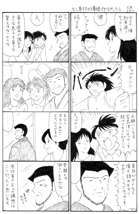 2008年発行の若島津父アンソロジーに寄稿したマンガ。参加者11名、全90ページの 豪華本でした。21世紀になって「若島津の父」をネタにそこまで盛り上がったのが驚愕です。 腐女子も年を取り、父の方に感情移入するようになったのかもしれません。健…可愛い息子…。
