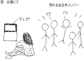 なんて会話が交わされます。合宿では部屋が別々なので、以心伝心で抜け出してきたに違いありません。