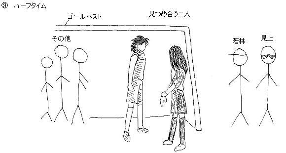 そんなわけで前半終了間際に手をケガしまして、若林と交代することに。「俺はまだやれる!」とか粘り、周りがワーワー言って止めるが聞かない。しかし…(図9)。