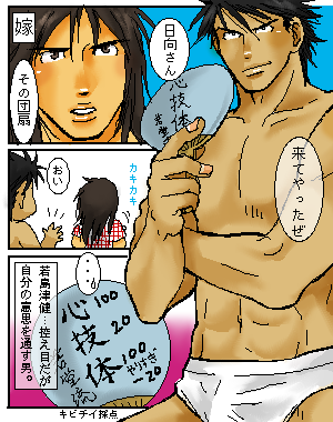 クロウさんありがとうございました! 白○リーフをテーマにコラボしていただけるなんて…。私も大変な危険を冒してアレを描いた甲斐がありました。そう、こんなものをはいていても日向さんはカッコイイのです。私もうこのワイルドな股間から目が離せないわ。うっとり…v